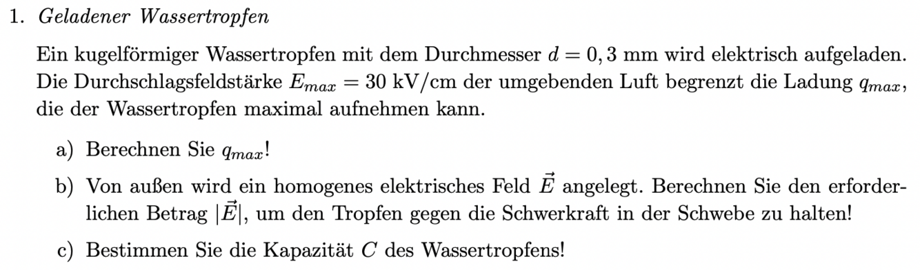 Blatt 4 - Aufgabe 1: Geladener Wassertropfen