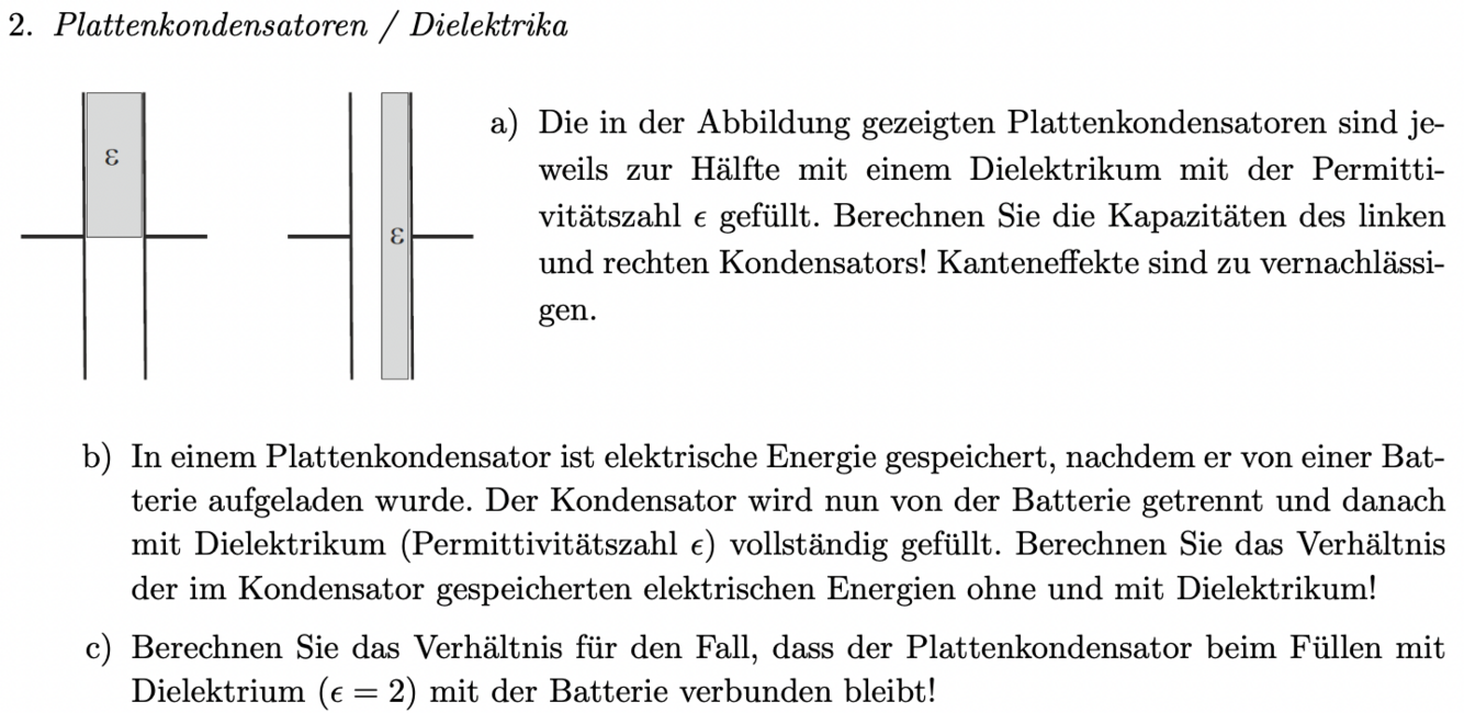 Blatt 4 - Aufgabe 2: Plattenkondensatoren / Dielektrika