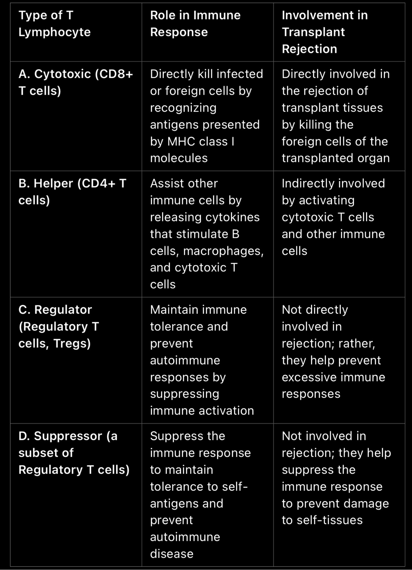 Rationale: Cytotoxic T lymphocytes (CTLs) are directly involved in the destruction of foreign transplant tissues, leading to transplant rejection.