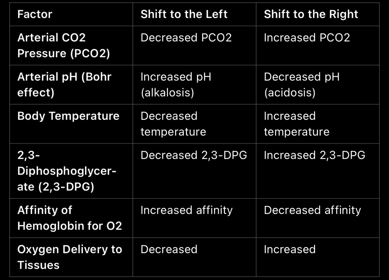 • C: CO2 (increased PCO2) • A: Acid (decreased pH, increased H+ concentration) • D: 2,3-DPG (increased 2,3-diphosphoglycerate) • E: Exercise (increased metabolic activity) • T: Temperature (increased body temperature)