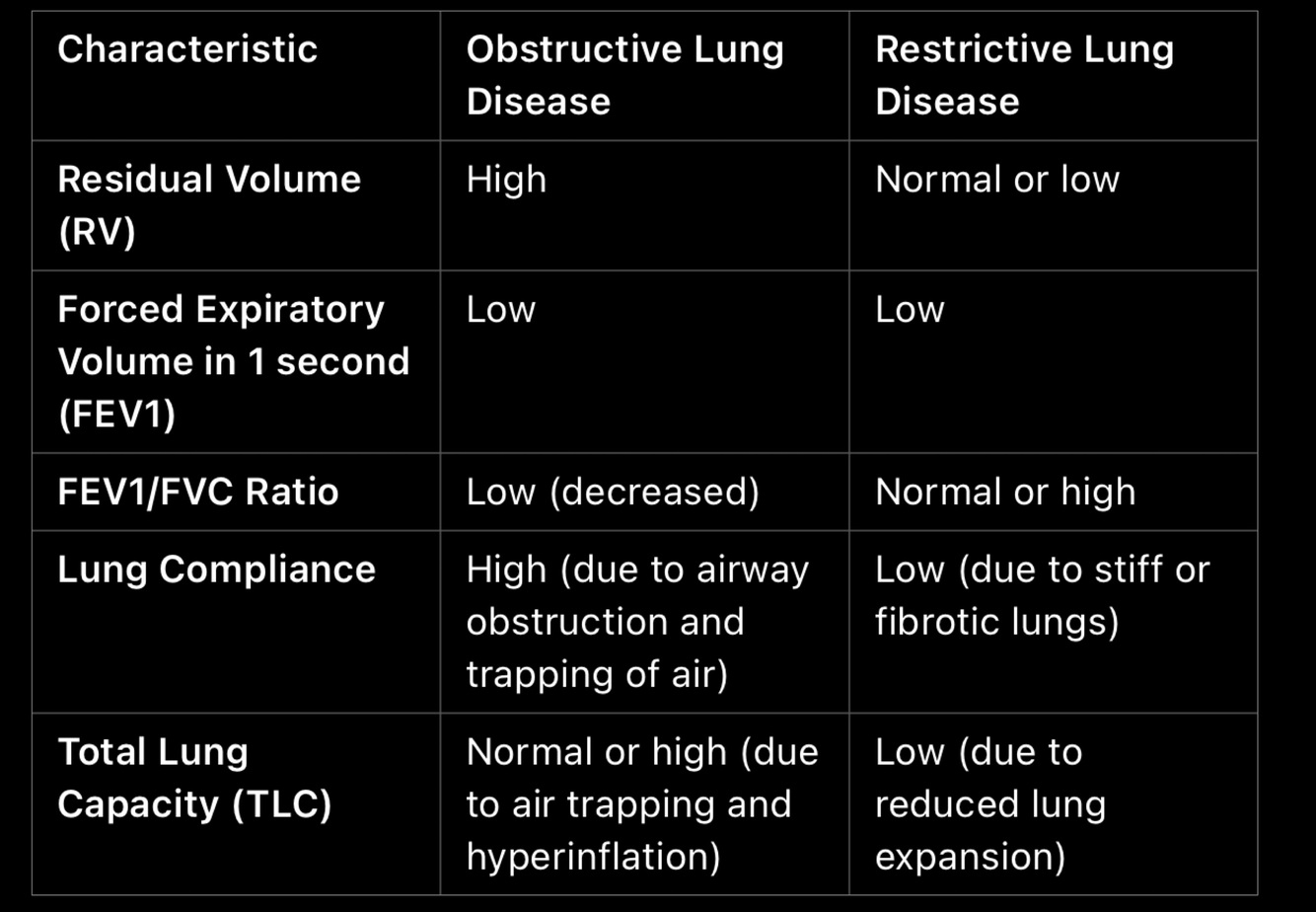 Rationale: Obstructive lung disease is characterized by difficulty in exhaling all the air from the lungs, leading to an increased residual volume.