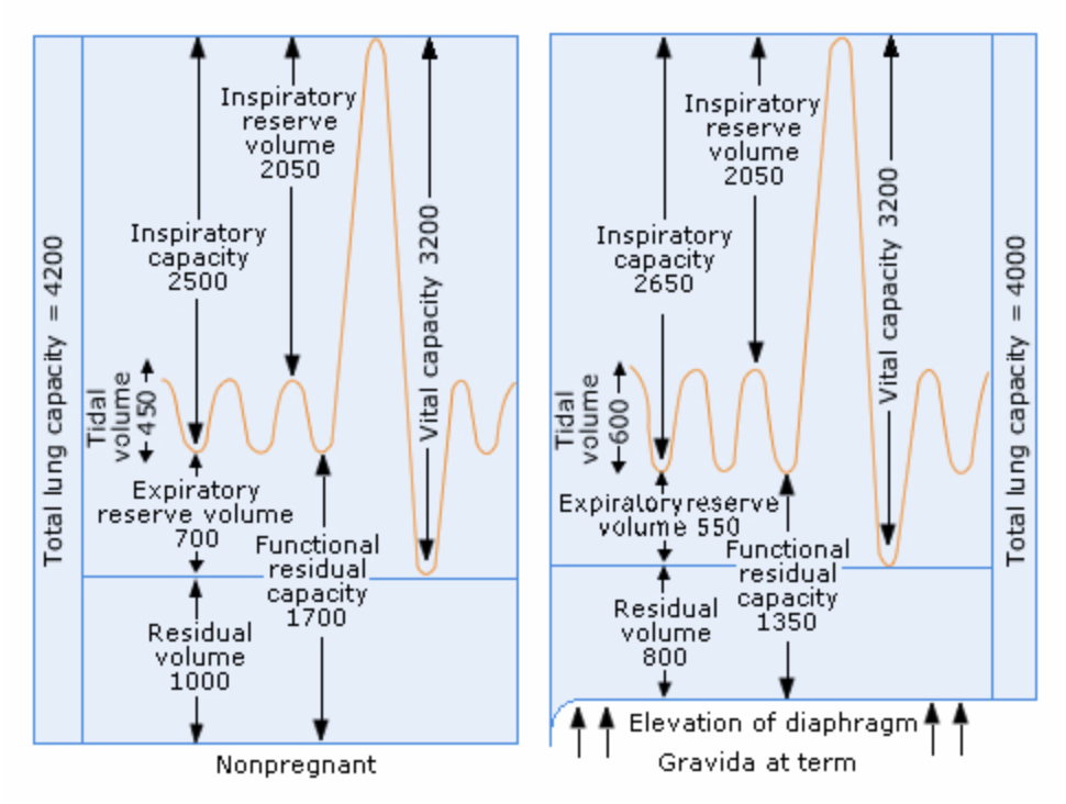 How does the spirometry trace differ in pregnant women compared to non-pregnant?
