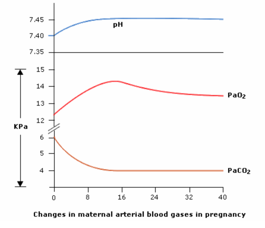 PaCO2 falls early in pregnancy.