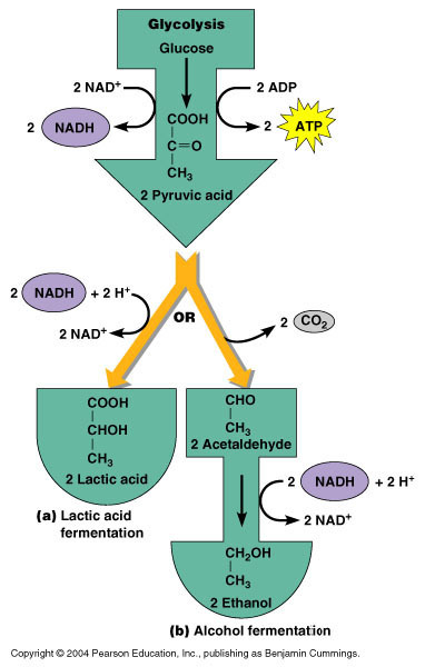 is an anerobic process in which a sugar is partially broken down to pyruvate, and acidic products accumulate from further metabolism of pyruvate to produce ATP in the absence of oxygen.