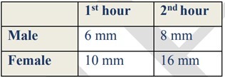 ESR normal values for male and females at 1st hour and 2nd hour