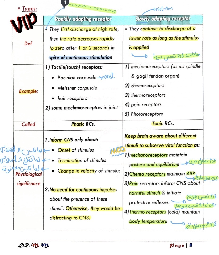Compare between Rapidly adapting receptors & Slowly adapting receptors in terms of: