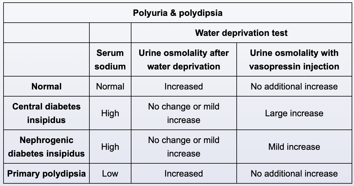 Resultados en prueba de desmopresina y restricción de agua
