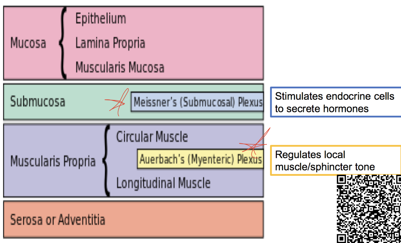 L15.4 Anatomy: cross-section of mucosa; myenteric and submucosal plexi