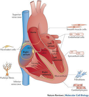 What are the different cell types in heart?