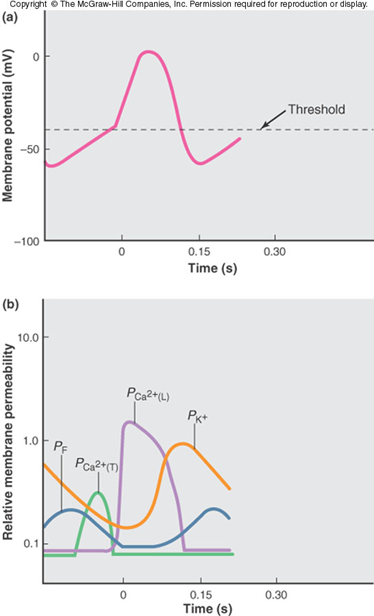 -60mV - partly due to specific sodium channels found in pacemaker cells