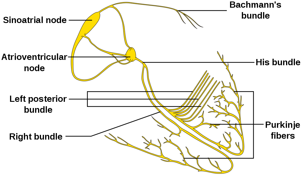 What is the pathway of conduction of the cardiac action potential?