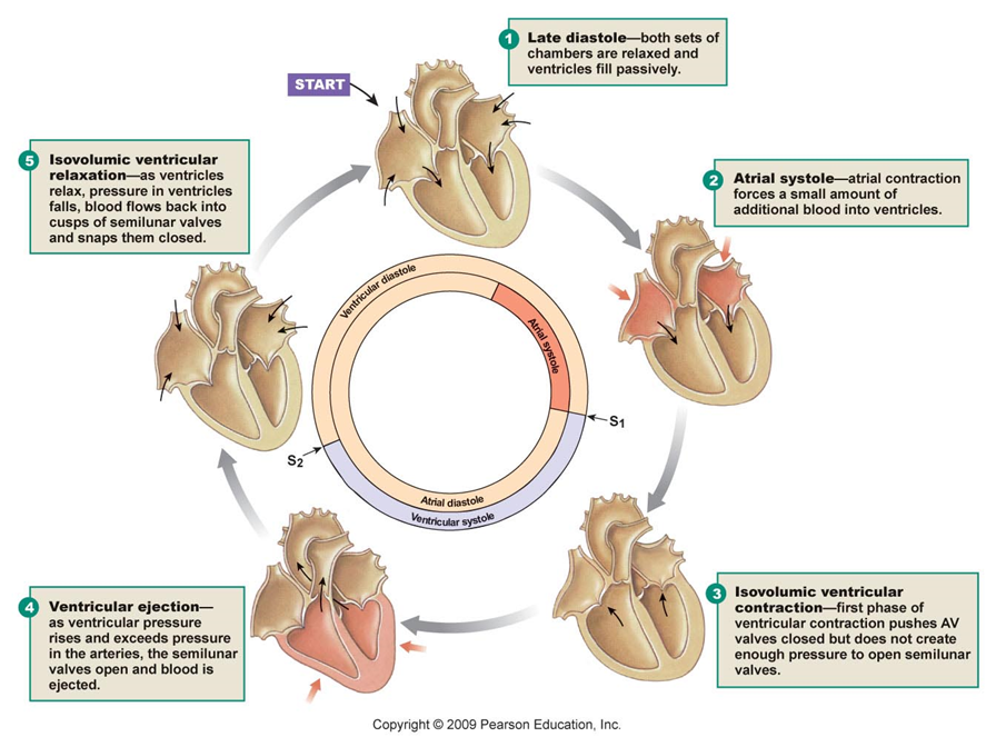What is the sequence of changes in chamber contraction throught the cardiac cycle?