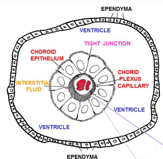 Fenestrated endothelia of the capillaries is surrounded by choroid epithelium w/tight junctions.