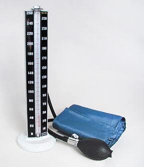 Instruments - a sphygmomanometer in extensible material, inflator(rubber bulb with valves, pressure indicator consisting of a mercury manometer calibrated in mmhg