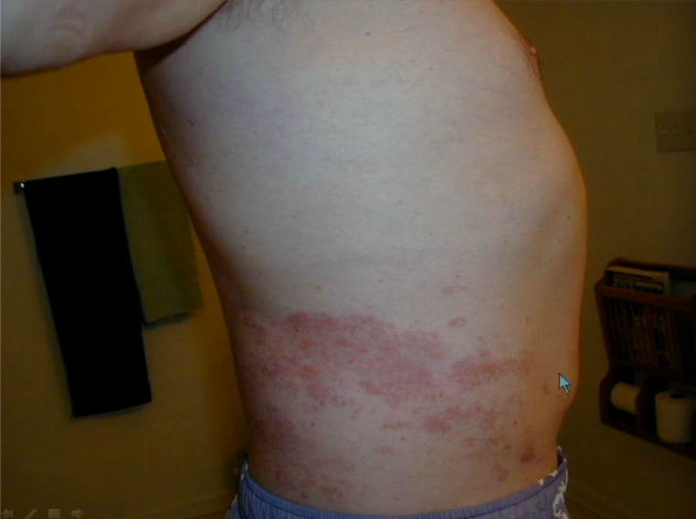 A patient presents with RLQ pain. The next day he develops this rash. What is your diagnosis?