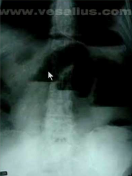 What are you looking for when you take an x-ray of a patient presenting with obstruction?