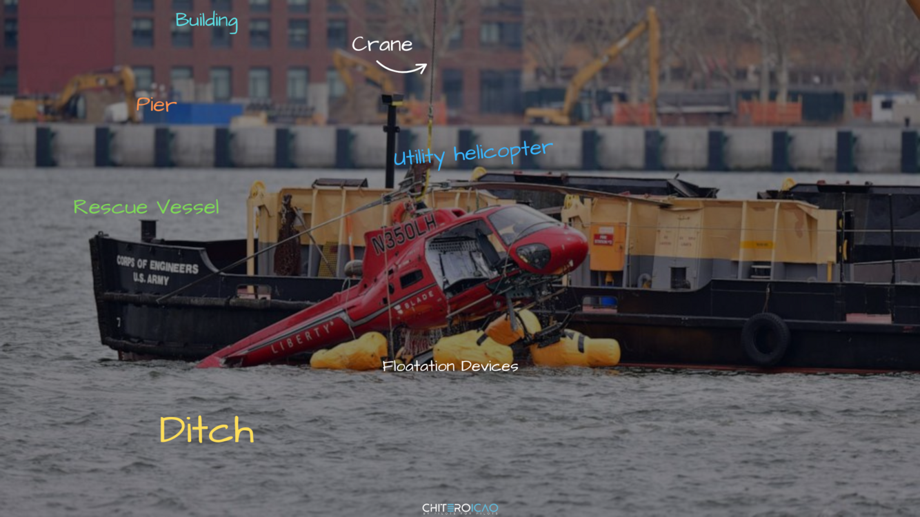 In this picture, I can see a red helicopter being recovered from the water.