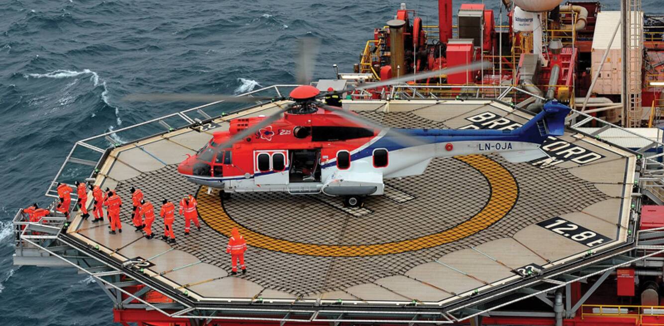 This type of helicopter operation is typical for transporting crew members to and from offshore installations.