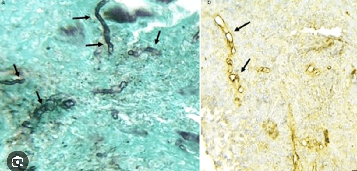 Gomori’s methanamine silver may be useful to visualise hyphae that are poorly septate