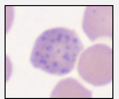 This is basophilic stippling of a RBC, this should raise concern for lead toxicity. The other finding that may be seen is a siderocyte