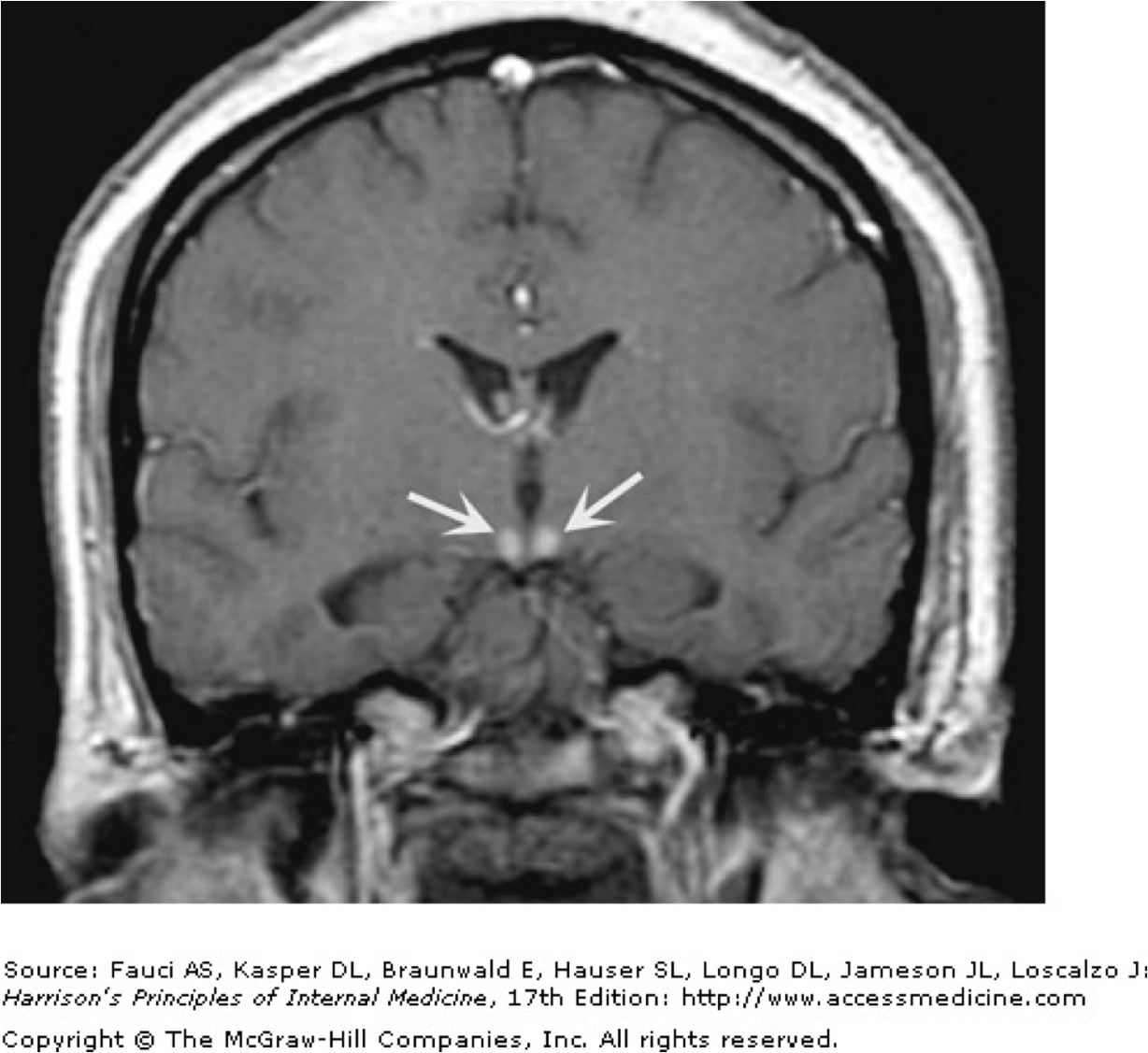 mamillary bodies light up b/c of increased blood flow in this area, localizing the injected contrast