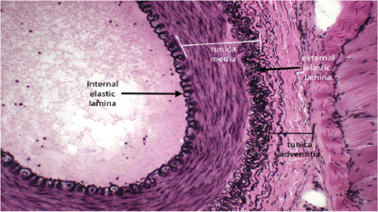 note the internal & external elastic lamina that contain elastin…