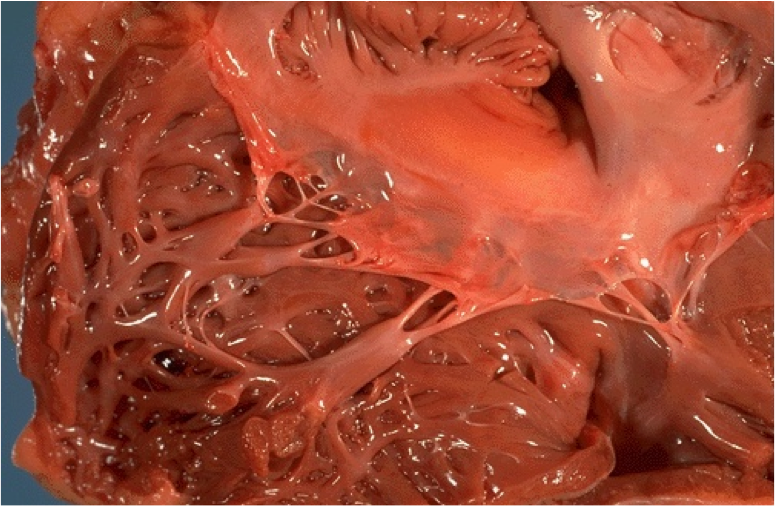 note the chordae tendinae connecting to the papillary muscles