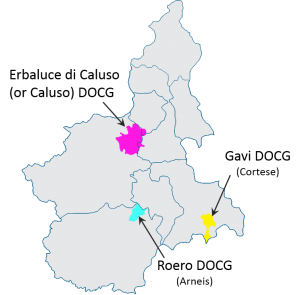 Which 3 DOCGs in Piemonte can produce white wine?
