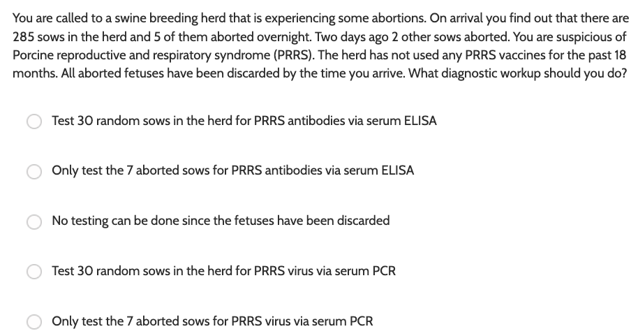 only test the 7 aborted sows for PRRS via PCR