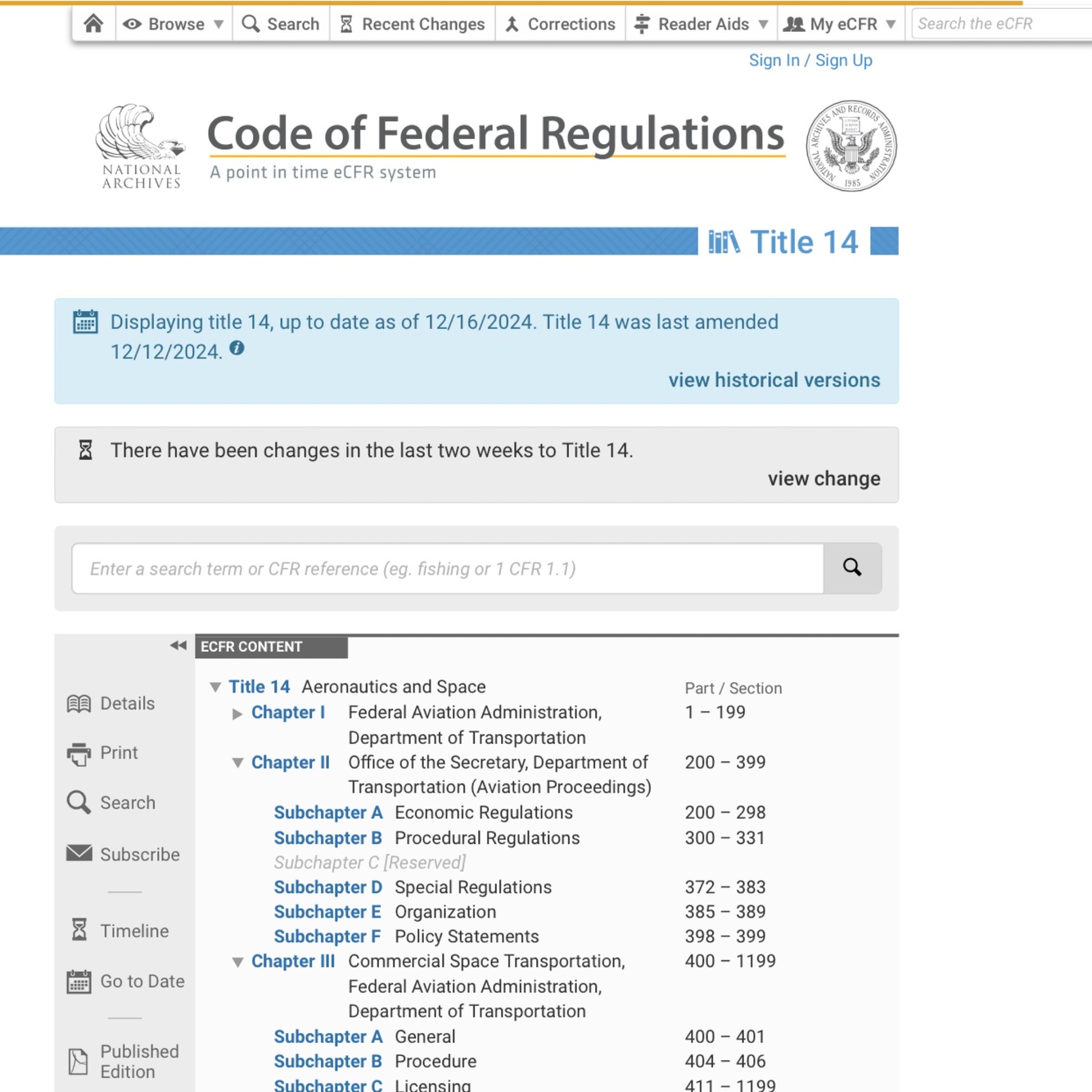 Title 14 of the Code of Federal Regulations