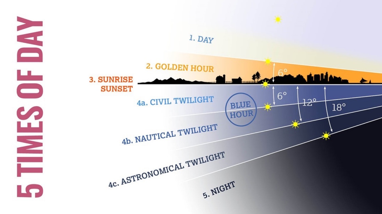 End/beginning of Civil twilight - sun 6° below horizon.