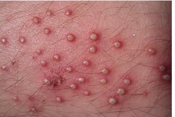 Pustulas ou pápulas centradas por pelo