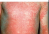 Lesões: eritema e escamo crostosas