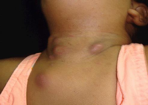 Pode causar aumento de linfonodos regionais.