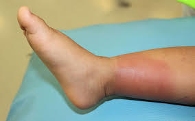 Ertema vivo com bordas bem delimitadas, edema intenso e doloroso + quadro doloroso.