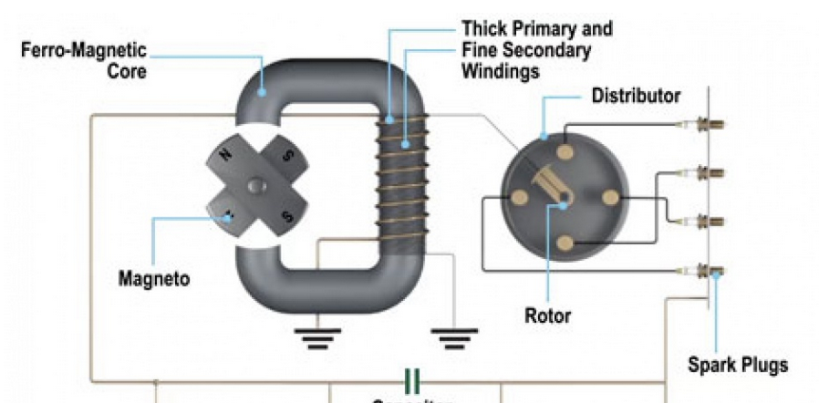 continually open and close causing the primary winding field to collapse and build producing a surge of energy in the secondary winding.