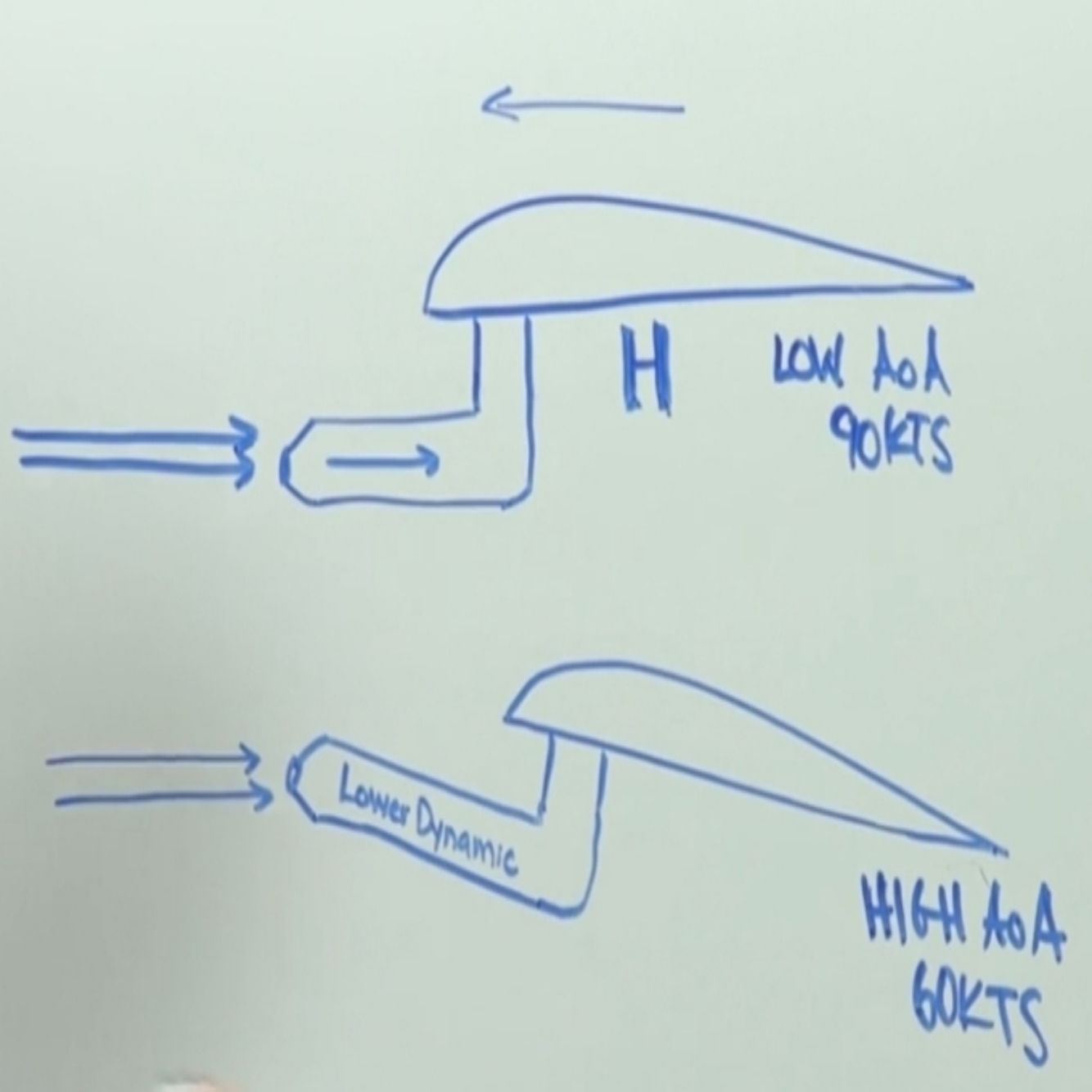 The difference between the high pressure being rammed into the pitot tube, vs the low pressure blowing by the static port, gives us our airspeed.