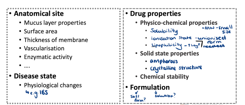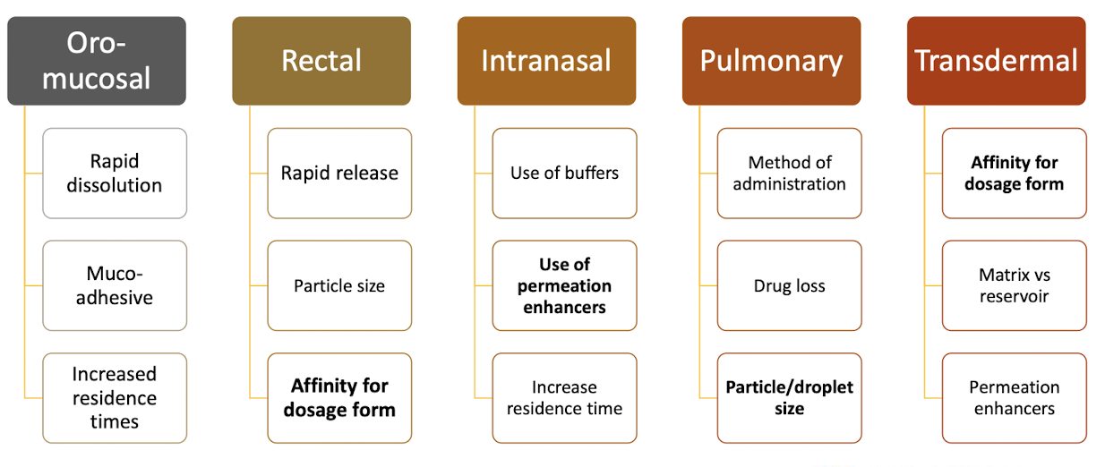 what are the formulation considerations of non-enteral routes? (Oro-mucosal, rectal, intranasal, pulmonary, transdermal)