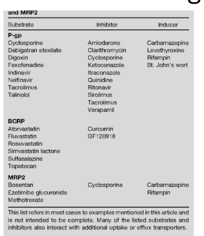 Inhibitors- inhibit efflux transport, affcting bioavailability