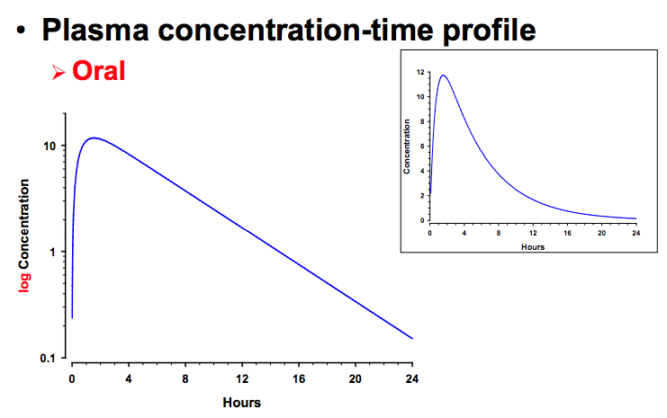 Show the plasma concentration(log)-time profile of a Oral Drug