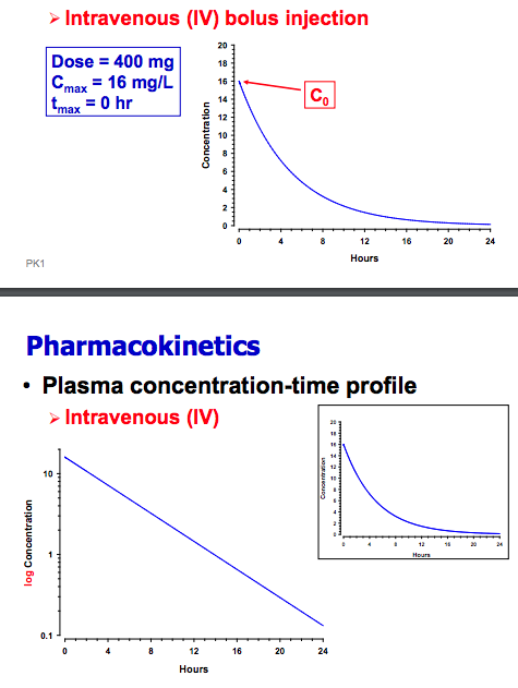 Initial concentration (C0) depends on Dose (D) and Volume (V) of reservoir