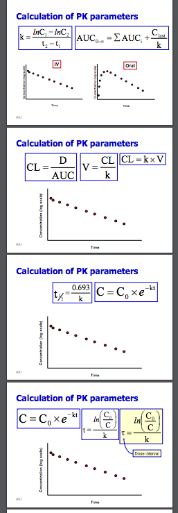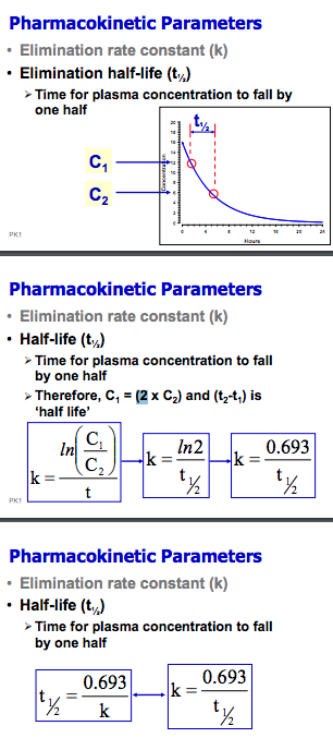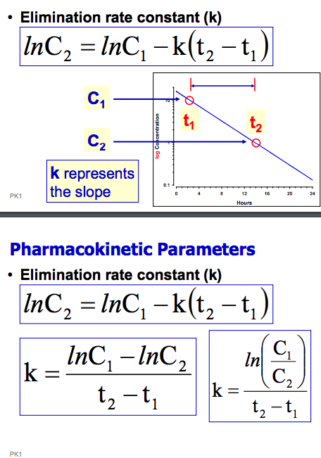 What is elimination rate constant (k)? (Pharmacokinetic paramteters) Provide the formula
