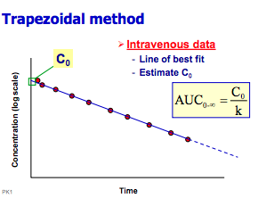 Trapezoidal method —> intravenous data? Provide the graph and formula