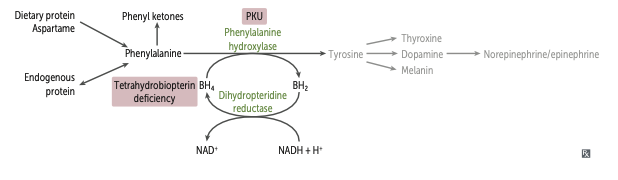 rarely from a BH4 (tetrahydrobiopterin cofactor) deficiency.