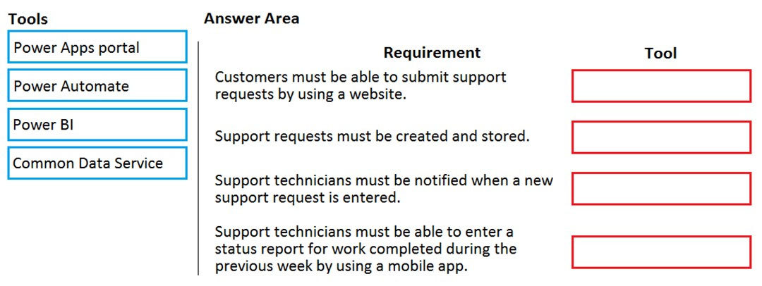 Which tools should you recommend? To answer, drag the appropriate tools to the correct requirements. Each tool may be used once, more than once, or not at all. You may need to drag the split bar between panes or scroll to view content.