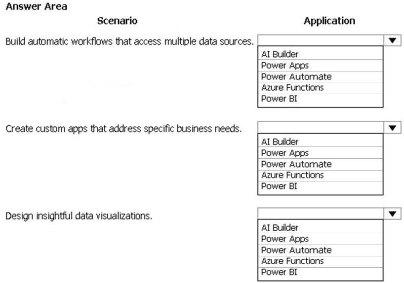 A company plans to use Power Platform to build apps which address specific business challenges.