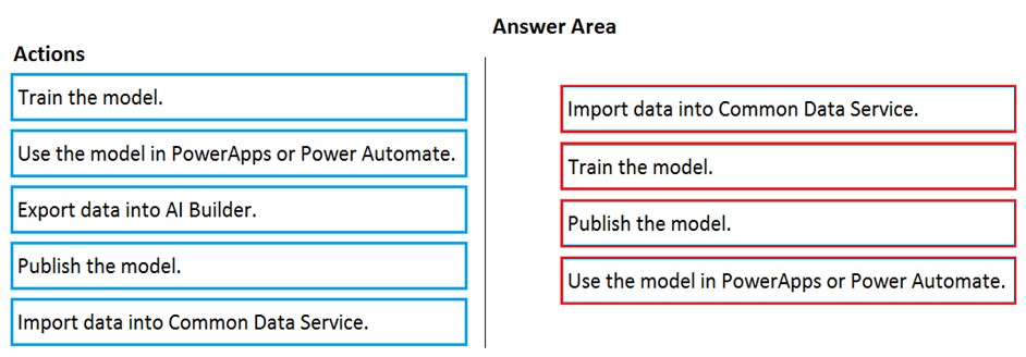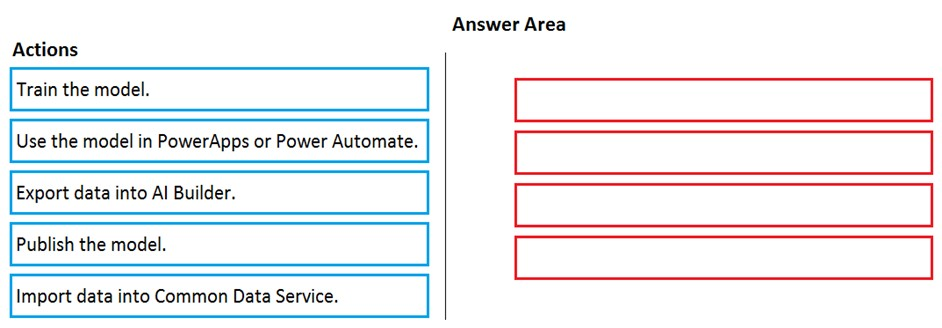 Which four actions should you perform in sequence? To answer, move the appropriate actions from the list of actions to the answer area and arrange them in the correct order.