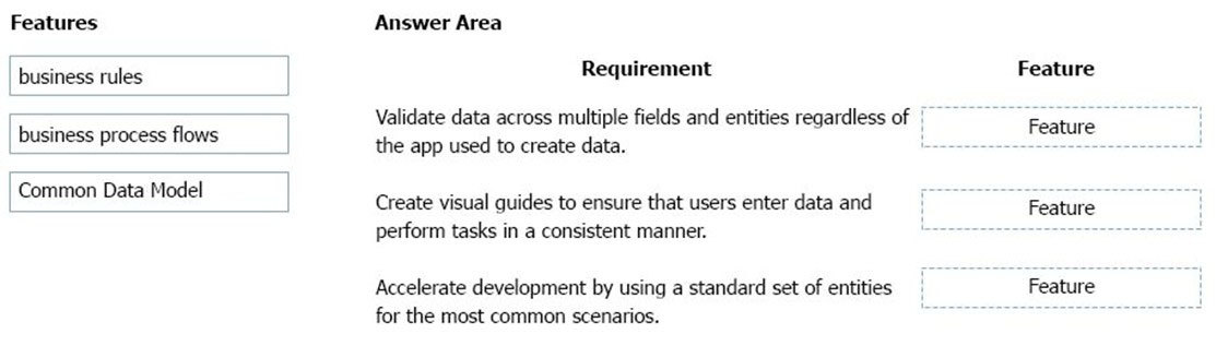 Which features should you recommend? To answer, drag the appropriate features to the correct requirements. Each feature may be used once, more than once, or not at all. You may need to drag the split bar between panes or scroll to view content.