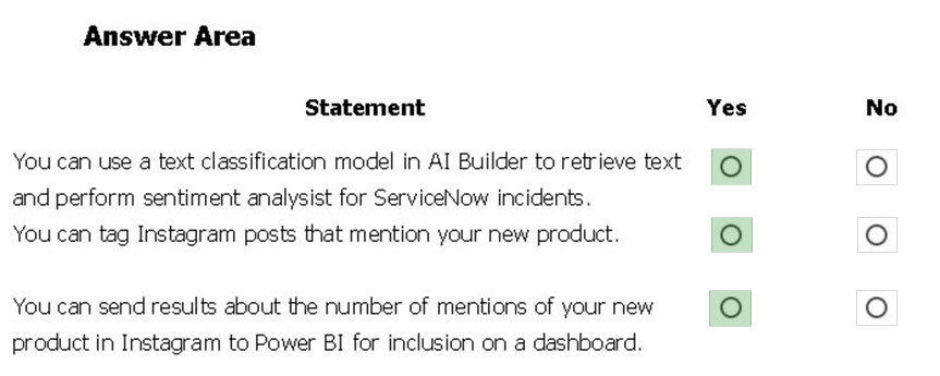 For which two scenarios can you use AI Builder? Each correct selection presents a complete solution.