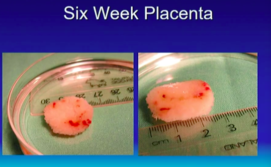 Which aspect of this is the maternal aspect in this 6 week old placenta?